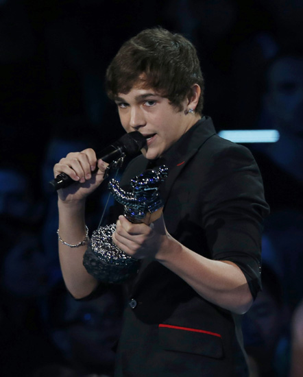 Kategori Artist to Watch berhasil dimenangkan oleh Austin Mahone lewat video klipnya yang berjudul 'What About Love'.