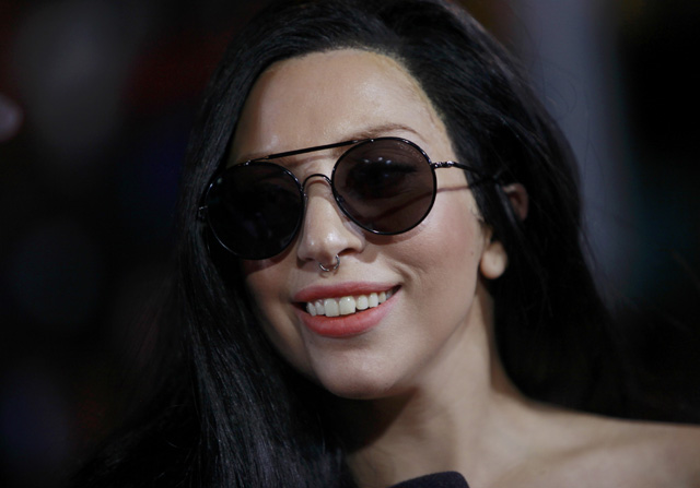 Lady Gaga tampil dalam balutan gaun hitam kulitnya dari Prabal Gurung.
