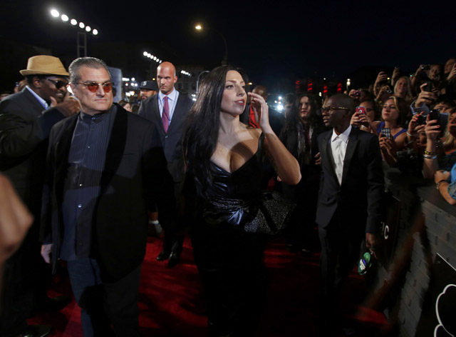 Lady Gaga menyapa para penggemar dari red carpet.