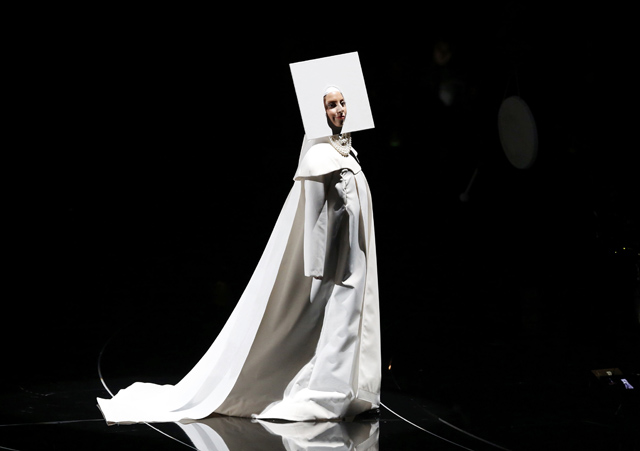 Namun, saat di atas panggung, Lady Gaga kembali tampil dengan kostum-kostum uniknya.